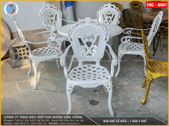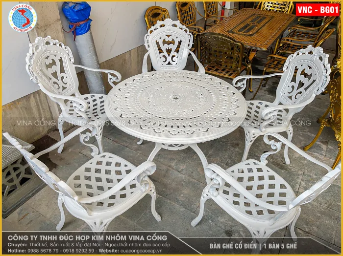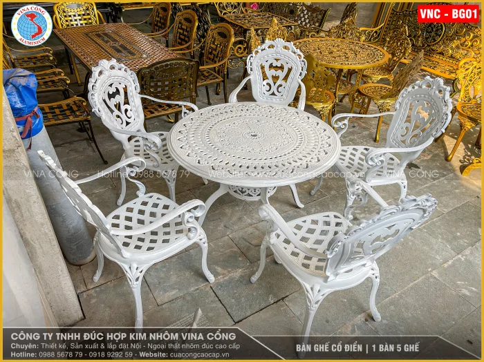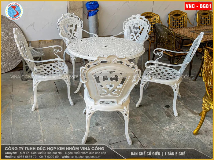 BÀN GHẾ CỔ ĐIỂN – BỘ 1 BÀN 5 GHẾ | MÃ VNC – BG01