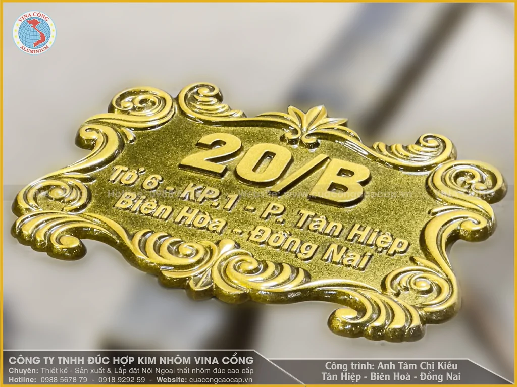 tạo cảm giác sang trọng, đẳng cấp và phong thủy tốt. Mẫu biển số nhôm đúc sơn giả đồng cũng là lựa chọn phổ biến nhờ vẻ đẹp cổ kính nhưng chi phí hợp lý.